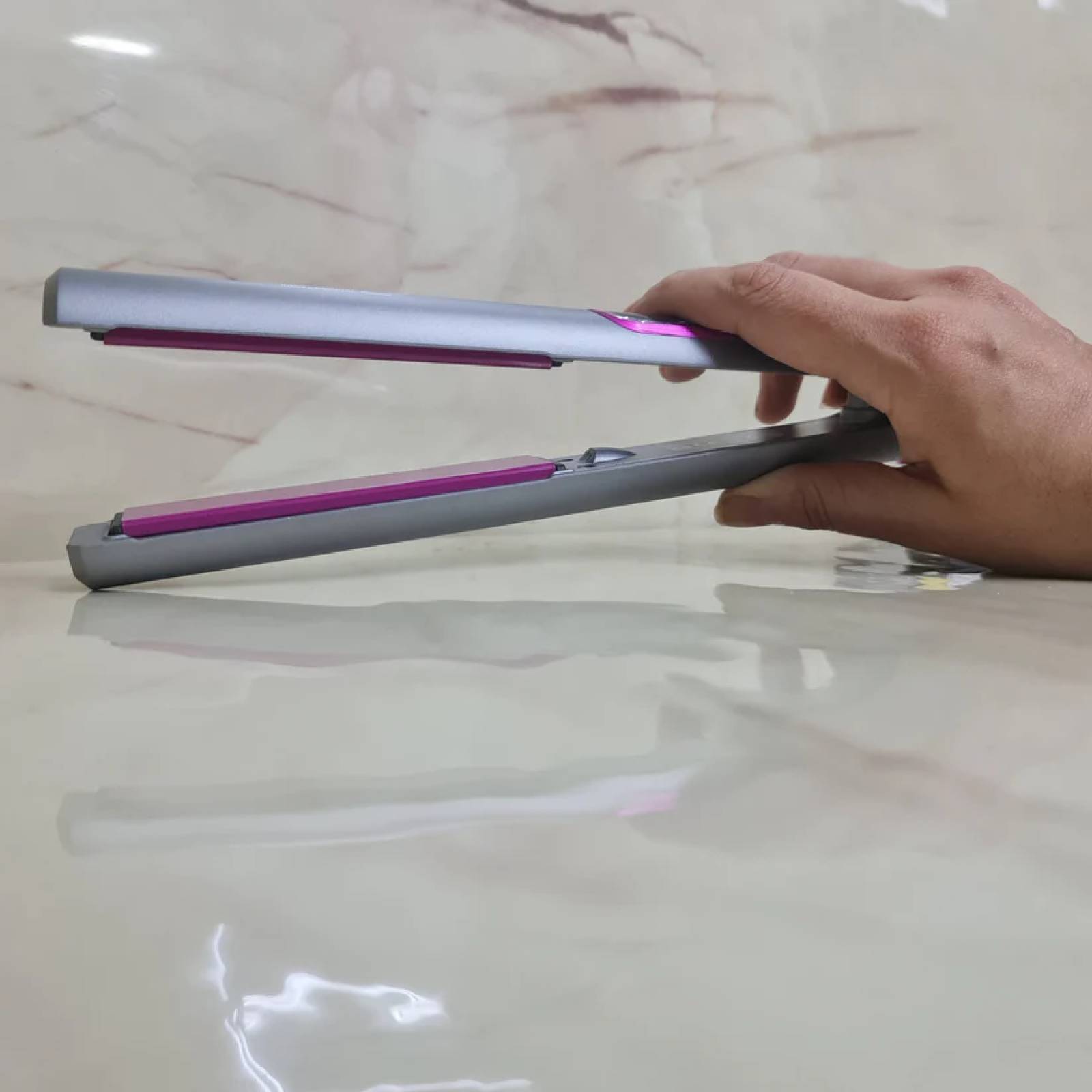 💎 ألواح تيتانيوم عريضة: تنزلق على الشعر بنعومة فائقة دون أي شد أو تكسر، وتوزع الحرارة بالتساوي لتمليس الخصلة من أول مرة (One-Pass Technology).