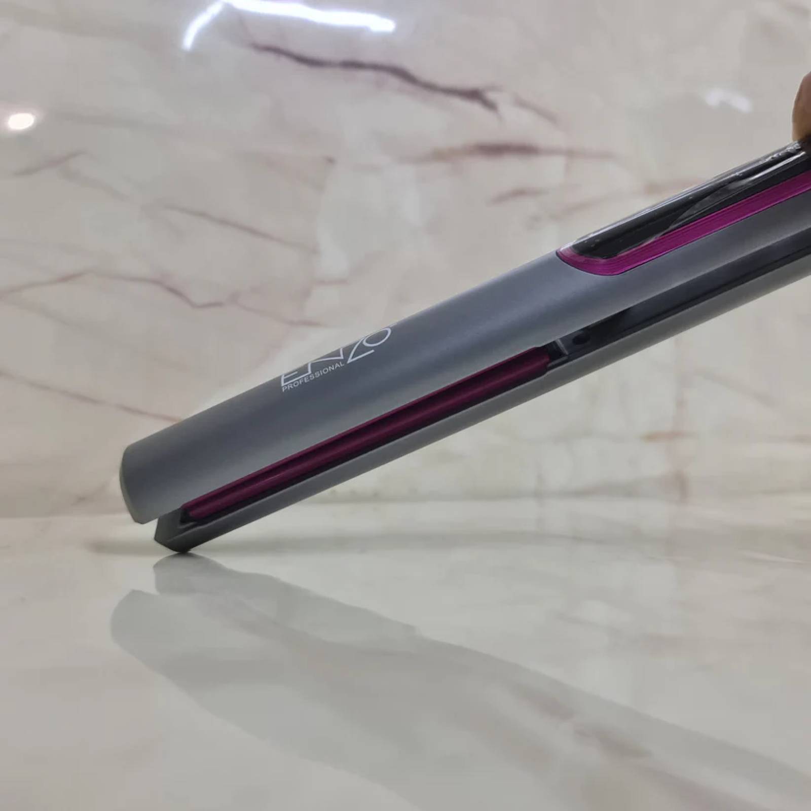 لماذا يفضل خبراء الصالونات (ونحن منهم) ألواح التيتانيوم؟ يتميز التيتانيوم بقدرته الفائقة على توصيل الحرارة بسرعة وثبات، مما يجعله الخيار رقم 1 لتمليس الشعر الخشن أو المجعد جداً. مكواة Enzo EN-3005 تمنحك أداءً جباراً يختصر وقت التصفيف للنصف ويحافظ على النتيجة حتى في الأجواء الرطبة.